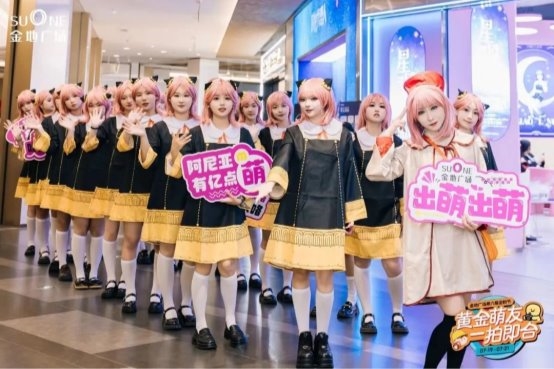 西安金地广场“霉霉粉丝音乐节” 针对二次元人群: 淮安金地MALL与淮安CNC漫展梦幻联动,通过百万粉丝人气COSER现场签名互动、二次元乐队LIVE演出,将现场观众一秒带回动漫画境; 武汉金地广场联合“排球少年”、“你的名字”,呈现二次元动漫嘉年华; 苏州SUONE·金地广场的百万声优大咖现场见面会,签售排队长达4小时;更有20名“间谍过家家”阿尼亚公主“出萌”巡游与森-BEFOREST舞团现场演绎,带动全场粉丝狂欢。
