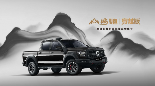山海炮穿越版定位“全球长续航高性能豪华皮卡”,基于坦克平台打造,为全场景穿越而生,是一台可以带一家人舒适出行,从容征服全球山海的高端宽体皮卡,以无与伦比的穿越能力、出众的拖挂能力、百变的改装能力、全场景休闲适应能力,成就真正的户外之王。 新车是国产唯一标配78L+53L双油箱的皮卡,综合续航达1400公里,搭载2.4T+9AT超强柴油动力组合,配备博格华纳4A+MLOCK智能四驱系统、三把机械硬锁、涉水喉、18英寸越野AT胎等百万级越野装备,为长途穿越提供最优解。