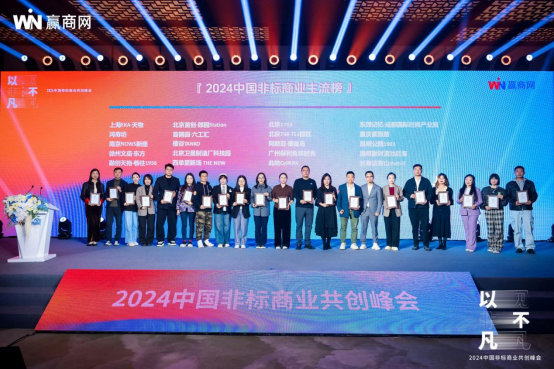上海EKA·天物、鸿寿坊、福州左海·光年PARK、南京NOWS新座、徐州文庙·东方、融创天拖·巷往1956、北京首创·郎园Station、首钢园·六工汇、檀谷TANKO、北京卫星制造厂科技园、西单更新场THE NEW、北京1733、北京798·751园区、阿那亚·秦皇岛、佛山创意产业园、广州保利鱼珠时光、珠光壹坊、COSMO成都、此地Cy park、东郊记忆·成都国际时尚产业园、重庆紫薇路、贵阳REX太平、昆明公园1903、昆明融创滇池后海、西安量子晨、西安小寨原力场、长春这有山thehill等项目获得此项殊荣。 非标时代,风起云涌。在本次活动中,现场嘉宾共同探讨了行业的前沿话题、分享了创新思维、建立了宝贵的合作关系。我们期待将峰会的成果转化为实际行动,让我们在快速变化的商业环境中把握机遇,在激烈的竞争中保持领先,为行业的可持续发展贡献智慧和力量,携手前行,共创未来,开启非标商业的新篇章!