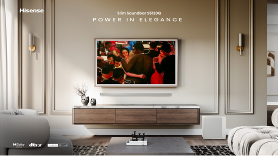 海信信扬研发团队创造性地采用了一体化高精度金属冲孔网罩。这种设计一举三得:第一,金属材质本身具备足够的结构强度,取消了额外的支撑支架,直接减少了3mm以上的厚度占用;第二,精确计算的孔径与开孔率,在保证防护的前提下,实现了对声波的最小阻碍,让声音通透而出,解决了“像戴了口罩一样”的发闷问题;第三,金属网面本身赋予了产品现代、精致的高级质感。 正是这种将结构件与声学件合二为一的思维,使得Slim Soundbar在达到普通产品1/3纤薄体积的同时,依然能容纳下复杂的独立腔体结构与高品质发声单元,实现了音质的跨越式提升。 重新定义“家居友好型” 高端音频新标准 海信Slim Soundbar的成功,不仅在于技术上的突破,更在于其精准的产品定位。它清晰地指向了追求品质生活、注重家居格调的新消费人群。其楔形设计与20°科学倾角,并非单纯的造型语言,而是经过严谨计算,旨在让声音更有效地投射到客厅的黄金聆听区,营造更佳环绕感。 这背后是海信在音频领域长期的积淀与爆发:从早期为电视配套研发音响,到2017年独创“空气声场技术”解决超薄电视低音难题,再到如今条形音响产品线在全球市场实现高速增长,海信已完成了从技术跟随到创新引领的转变。 海信集团旗下信扬公司作为集团国际化战略的重要载体,在海信音响业务的全球拓展中扮演着关键角色。其通过全球贸易网络形成的市场前沿洞察,精准把握国际消费趋势与声学技术演进,反哺产品研发,为海信音响注入前瞻性的设计语言与精准的市场定位。