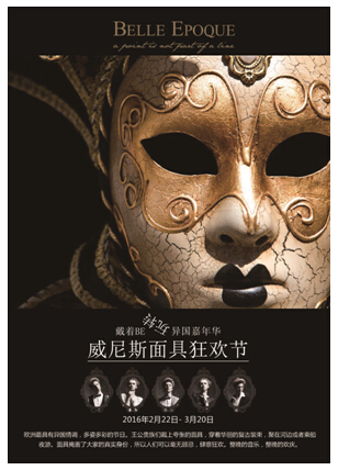 即日起至3月20日,BE将以威尼斯面具狂欢节为主题,为期一个月的欢庆主题,让您就算不在威尼斯,也能体验一番最具异国情调,独具一格的面具文化。