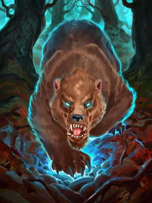 我们还讨论了幽灵野兽的分类,比如女巫森林灰熊和阿尔福斯。他们真的能算作野兽吗?对于女巫森林灰熊而言,我们很喜欢它和巫术时刻以及卡瑟娜·冬灵之间的配合。我们决定更新它的插画,使其看起来更像野兽而不是幽灵。阿尔福斯的出镜率很高,它经常能被死亡猎手雷克萨发现。这很有趣,我们会让它保持现状。