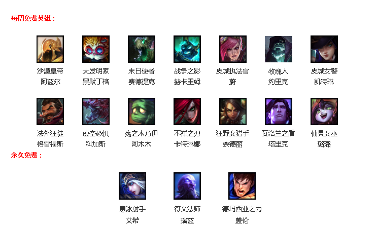 人民网北京7月5日电(董思睿)《英雄联盟》官方公布了7月6日免费英雄,于当日10点左右更换每周免费英雄。新玩家们会发现就算你没有买英雄,在游戏中也有17个免费英雄可以使用。 本周免费英雄很不错,上单可选璐璐,中单有卡特琳娜、黑默丁格,打野有阿木木、奈德丽、格雷福斯,下路的话ADC可选凯特琳、璐璐和格雷福斯,辅助的话璐璐是不错的选择。