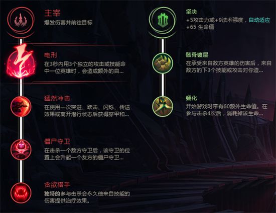 电棍的中单剑魔符文搭配如上,主系选择主宰,副系选择坚决。 基石符文选择电刑,配合三段Q的伤害可以有极度可观的爆发伤害,特别是第三段Q的剑锋伤害同时打出电刑,敌方瞬间会少一大格的血量,脆皮完全不可能承受这种伤害。猛然冲击配合E技能提高伤害,僵尸守卫是中单非常喜欢的符文,可以有效提升中路对于两边视野的控制。最后选择贪欲猎手,最大化自身的回血能力。 副系大多数人选择坚决,因为在中路要对抗一些长手英雄,点出骸骨镀层和蛹化可以减少前期被过分的消耗,非常适合技能命中不是特别精确的新手玩家。还有另外一种点法就是点巫术系的灵光披风配合焦灼,增加大招时的移速和对线的消耗,这种点法在中单剑魔的位置上较为少见,仅供大家参考。