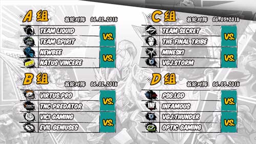 赛制: 每个小组进行双败赛制的比赛,胜者组冠军和败者组冠军晋级主赛事胜者组,后两名的队伍晋级主赛事败者组,所有比赛均为BO3,其中6月2日进行A/B两组比赛,3日进行C/D组的较量,小组赛期间不淘汰队伍,所有战队均进入主赛事阶段的比赛。玩家可在DOTA2客户端免费观战所有比赛也可通过斗鱼、熊猫、火猫、虎牙直播平台收看精彩赛事。 考虑到上一个Major——ESL英国伯明翰上,中国战队全部被淘汰,这次的Major中国战队表现不容乐观。