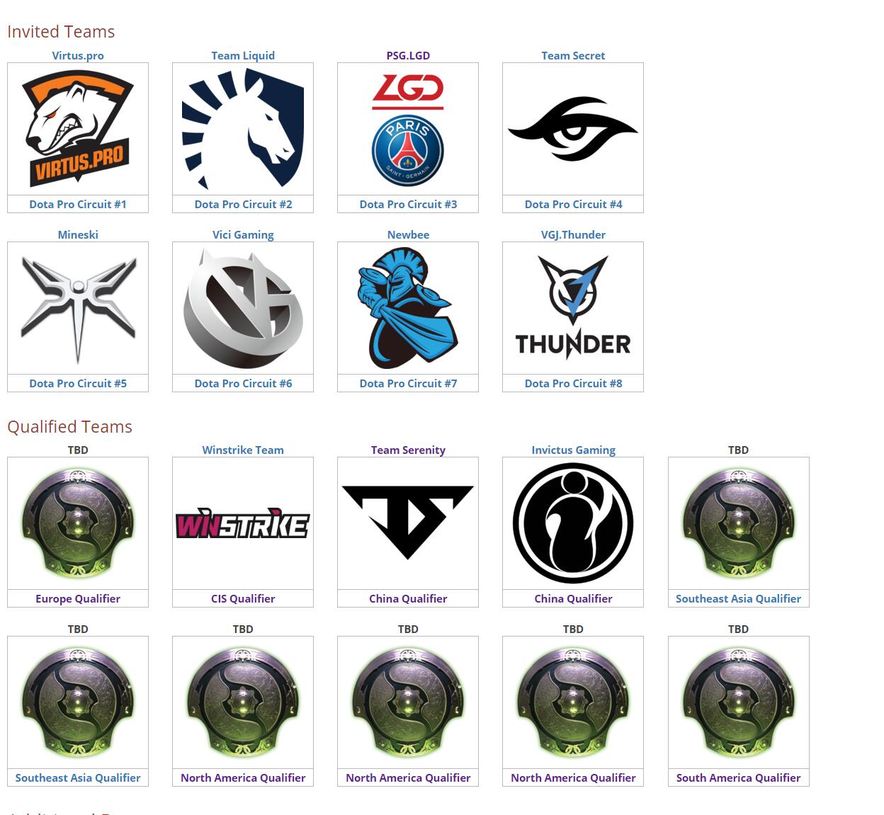 这6支CN战队将在8月前往加拿大温哥华,争夺DOTA2至高荣誉——国际邀请赛冠军。希望他们能与四支受邀的中国队一起在八月共创佳绩,守护中国战队的“偶数年”神话! TI8国际邀请赛将于8月15日开战,25日结束,当前奖金池为1474万5107美元。除了受邀的8支队伍外,还有10支预选赛队伍,共有18支队伍参赛。 目前只有中国赛区和CIS赛区决出了TI名额,其他赛区还在进行中。