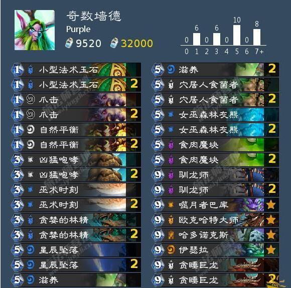 卡组代码 AAECAZICBKIJr9MC8eoCnvgCDVZf6QGaCJjSAubTAovhAo3mAvnmAt3rAo3wAvLxAr/yAgA= 卡组思路 该卡组舍弃成长、部分解场法术及巫妖王搭载了奇数体系,利用升级后的英雄技能可以轻松度过前期。欧克哈特大师可以招募穴居人食菌者、驯龙师(招募贪睡巨龙)和女巫森林灰熊。虽然带了女巫森林灰熊会污染墓地影响巫术时刻复活哈多诺克斯,但在前期复活一个3攻12血的墙也十分强势,大大减少了巫术时刻前期的卡手几率,在面对快攻及节奏卡组时节奏更加流畅。 |
