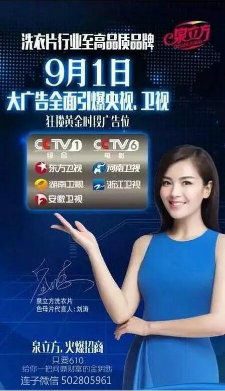 泉立方正在改革中国洗涤市场,正在替代洗衣液,就像2009年洗衣液替代洗衣粉一样,明星代言(刘涛),全国广告,泉立方即将家喻户晓,它终究会像蓝月亮一样走进千家万户,你们今年能赚多少,今年命运的转变就看你的眼光了。