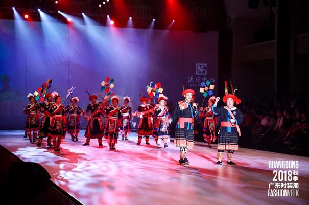 值得一提的是,本届广东时装周-秋季助力非遗文化的传承与保护,大力弘扬国家级非物质文化遗产---瑶族刺绣、省级非物质文化遗产---瑶族服饰。开幕式现场,来自清远市连南瑶族自治县的舞蹈队首先为大家带了精彩的舞蹈表演。清远市连南瑶族自治县是广州越秀区对口帮扶地区。自2014年对口帮扶清远市连南县以来,越秀区多方筹集6300万元帮扶资金投入产业发展、文化传播、教育卫生等领域,有力的促进了当地社会经济的发展,人民的幸福指数显著提高。连南也是我国民曲《瑶族舞曲》的起源地,全国乃至全世界唯一的排瑶聚居地。在这片古老而又神奇的土地上,蕴藏着丰厚的文化遗产。《歌堂优嗨歌》是国家级非物质文化遗产代表作民间民俗文化活动《瑶族耍歌堂》中的精彩片段。