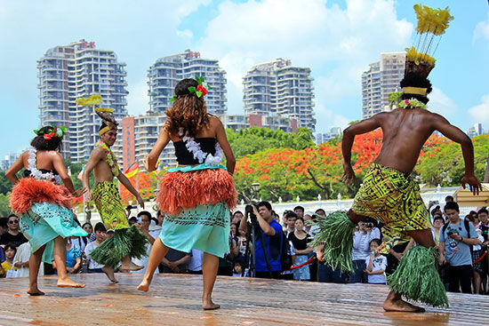 5月13日,第第十四届文博会分会场深圳世界之窗大洋洲风情文化周开幕,中外演员同台献艺。中新社记者 陈文 摄