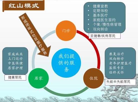 黄埔区红山街社区卫生服务中心是一家民办非企业的社区卫生服务机构,中心前身是广州文冲船厂职工医院,服务辖区9.6平方公里内5万余社区居民及厂矿企业职工。中心一直以居民需求为导向,“以人为本,以健康为中心”,不断健全社区卫生服务,狠抓基本医疗,兼顾公共卫生,开拓居家养老服务。近年来,中心形成了从门诊签约管理、住院康复护理、临终关怀到居家养老的闭环式社区医养服务圈,简称“红山模式”,深受社区居民信任。2017年,中心年门诊人次达35万人次,真正实现了分级诊疗和居家养老。 |