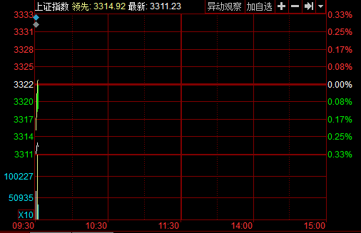11月28日沪指分时图 新华网北京11月28日电 周二两市涨跌不一,沪指、深成指低开,创业板指数微幅高开。截止发稿,沪指报3311.23点,下跌11点,跌幅0.33%,成交8.75亿元;深成指报10938.4点,下跌15.78点,跌幅0.14%,成交13.88亿元;创业板指数报1761.52点,上涨0.62点,涨幅0.04%,成交4.1亿元。 板块方面,光学光电子、计算机应用、医疗器械服务、高送转等表现活跃;化学制药、煤炭开采、有色冶炼加工、半导体元件等跌幅居前。 个股方面,ST股除外,梅泰诺、晨丰科技、中新赛克、药石科技、千方科技、江南嘉捷等8股涨停;山东华鹏、高能环境、哈空调、尔康制药4股跌停。 |