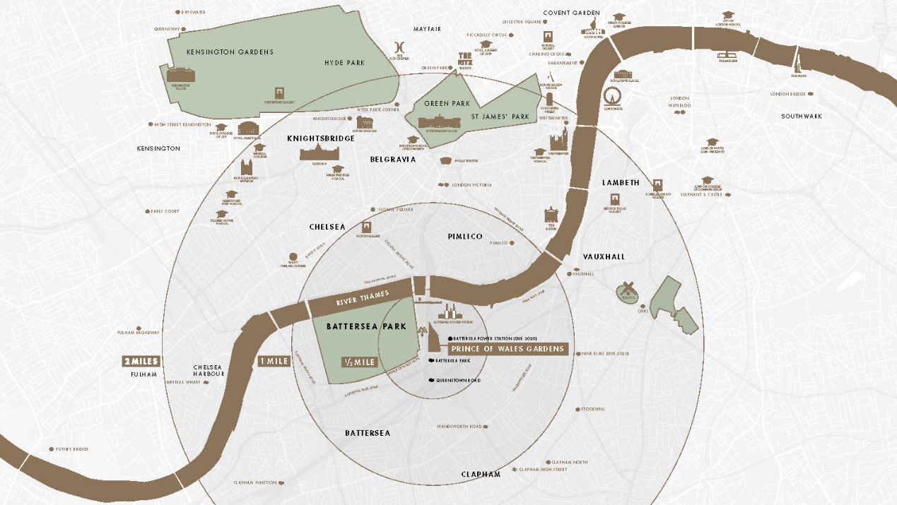 此外,项目的内部空间宽敞,高于国家空间标准。宽敞的住房给住户带来更具灵活性的空间,迎合各种生活方式需求。每套宽敞公寓还设有私人阳台,可一览巴特西区域的秀丽景色。 便捷的交通连接伦敦与世界 交通便捷是项目的一大优势。位于城铁Battersea Park站与地铁Battersea Power Station站之间的威尔士花园,到达两个站点的步行时间均不到5分钟。值得一提的是,到2020年开通后,这里将成为旅游1区的一部分,前往市区及西区的出行时间将减少到10分钟以下。 受惠于地铁Northern Line延伸工程,当2020年Battersea Power Station建成通车后,约10分钟即可到达位于伦敦市中心的莱斯特广场。
