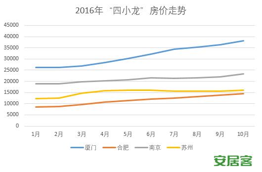 金九银十往往是一年里房地产市场最为火热的时候,但今年却遇上了一盆当头冷水,国庆期间多地先后推出楼市调控政策,而合肥、南京、苏州与厦门,之前因为领涨全国而被冠以楼市“四小龙”称号,在此轮调控被重点关照。距离十一调控周过去一周有余,这四个城市虽成交量大幅下滑,但房价却出现逆势上扬态势。 成交量断崖下跌 房价逆势上涨 据报道,领涨的“楼市四小龙”中有三个城市成交量呈现了断崖式下跌。其中,厦门10月3日至10月9日的新房成交面积仅为0.7万平方米,10月10日至10月16日为0.71万平方米,而政策出台前的9月26日到10月2日这一周,厦门新房成交面积是1.25万平方米。政策出台后,厦门成交量已连续两周处于低位。 限购出台后,南京新房认购量都在300套左右,相比市场最火热时期下跌了近3成。而合肥已经连续多日出现了商品房备案0套的情况。 然而成交量断崖式的下滑,并未传导到房价上。相反,根据安居客房价指数显示,合肥、南京、厦门、苏州四城10月房价均呈现环比和同比的双涨。截至10月18日,合肥10月二手房均价14581元/m²,环比上月上涨 5.84%,比去年同期上涨 76.18%,涨幅领衔全国;南京10月二手房均价23337元/m²,环比上月上涨 5.64%,比去年同期上涨 25.49%;厦门10月二手房均价 38195元/m²,环比上月上涨 4.72%,比去年同期上涨 48.98%;苏州10月二手房均价 16057 元/m²,环比上月上涨 3.10%,比去年同期上涨 38.39%。 从这组数据中可明显看出,虽然成交量在大幅走低,但是这四个城市的房价却依旧呈现上涨态势。即便是最早重启限购的城市苏州,早在8月便推出限购政策,10月3日又在原有的限购基础上,再度对限购进行升级。然而,苏州的房价从8月至今,仍旧呈现持续上涨态势。