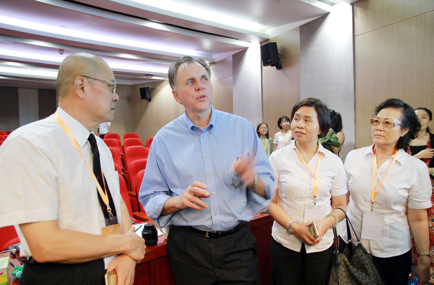近日,被誉为“幽门螺杆菌之父”的诺贝尔奖得主Prof. Marshall(马歇尔教授)在广州展开了题为“幽门螺杆菌微生态与消化系统疾病”的专题演讲,太阳神集团作为胃肠保健领域的领导品牌也受邀参与了此次讲座,并与马歇尔教授就“幽门螺杆菌的致病机制与防治”等问题进行了零距离的探讨。 在演讲中,马歇尔教授表示自己对中国目前近7亿中国人感染幽门螺杆菌所引致对胃健康问题的关注,特别是对由于幽门螺杆菌在胃中附着于胃粘膜并损伤粘膜细胞,从而引发胃的健康失调状况的焦点十分感兴趣。作为国内独家拥有主打专业保护胃粘膜产品的太阳神集团,马歇尔教授表示十分重视,并在演讲的“专题研讨”环节中,亲自与集团马副总等以研讨会的形式在幽门螺杆菌具体的致病原理、保护胃粘膜以及其他议题进行专业交流和讨论。马歇尔教授与太阳神集团两者思想的碰撞,引来了满堂的掌声。