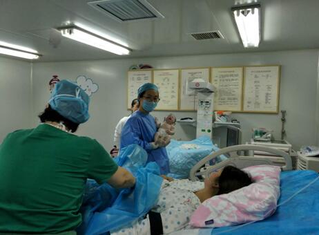 为此,孕妇临产住院后艾玛医疗团队制定了产程处理计划,产科医生、麻醉医生、新生儿医生、助产士、手术室护士以及血库也进入紧急备战状态,做好5分钟紧急剖宫产准备。 经过大家的不懈努力,14点06分宝宝出生了,哭声洪亮,是个可爱的女孩,体重3.38千克,宝宝出生评分1-10分均评为10分。10分钟后胎盘胎膜顺利娩出,非常完整。产后子宫收缩良好,出血不多,产后血压正常,母女平安!