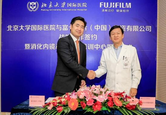 10月14日,由富士胶片(中国)投资有限公司与北京大学国际医院共同建立的消化内镜动物模拟培训中心在北京大学国际医院正式签约揭牌。北京市昌平区卫生与计划生育委员会副主任杨杰出席并致辞,并由富士胶片(中国)浅房勝也副总裁与北京大学国际医院陈仲强院长进行了现场签约。同时,在双方领导及全国富士学员的共同见证下于医院临床技能中心宣布“消化内镜动物模拟培训中心”正式揭牌。