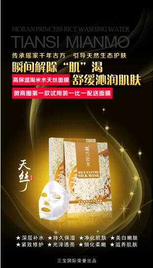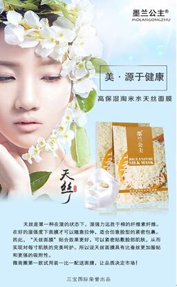 墨兰公主基于现代科技而生,以电商、微商为主要销售渠道,在全国各地都有优秀的销售团队,他们年轻、时尚、充满梦想和干劲,他们为越来越多的消费者带去健康和美丽。现墨兰公主淘米水面膜的上市,又会掀起新的护肤狂潮! 墨兰公主淘米水天丝面膜在三宝国际科研团队不懈努力的研发测试,综合市面上所有面膜问题,不断改良,力求现代工艺与传统养颜秘方最完美结合。高保湿淘米水面膜传承了瑶家千百年养颜秘方,采用精选优质有机稻米,结合现代纳米萃取工艺,又添加透明质酸等多种成分,每个细节力求完美,精益求精,引导天然生态护肤,引领护肤美颜新领域!