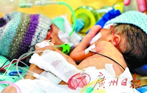 这对连体姐妹是分离手术成功者中年龄最小的一对。 瑞士伯尔尼一家医院近日宣布,他们成功分离了一对出生8天的连体婴儿姐妹。据报道,在历史上,这对连体姐妹也是分离手术成功者中年龄最小的一对。目前,这对姐妹情况良好,已经可以吃奶了。 出生八天就手术 据英国《每日邮报》报道,2015年12月,双胞胎姐妹玛雅和丽迪雅在瑞士伯尔尼的一家医院里提前8周来到人间,两人加起来体重2.2公斤。与她们一同出生的还有一名健康婴儿,该婴儿出生时与她们是完全分离的。医院说,两个婴儿肝脏和胸部严重连接在了一起,但她们都各自拥有其他的关键器官。 刚出生时,她们的情况还算稳定。按照医生的计划,在医院观察几个月后,这对双胞胎方能接受分离手术。但在出生一周后,她们的情况急剧恶化。一个婴儿体内血量过多,血压非常高,另一个婴儿体内血量不足,血压非常低,这是很危险的。医生认为,这对双胞胎活下来的唯一机会就是进行分离手术。据称,该手术成功几率仅为1%。 12月10日,在出生8天后, 她们接受了分离手术。手术由5名外科医生、两名护士和6名麻醉师共同实施,耗时5个小时才成功。而这对连体婴儿是史上被成功分离的年龄最小的婴儿。 日内瓦大学儿外科的芭芭拉负责这一手术,她表示,这对连体婴儿的肝脏让她们的身体承受了巨大的压力。“我们已经对这对婴儿的死亡做好了准备,因为这种情况实在罕见。”她对瑞士媒体说,“但整个手术很成功,在今后的职业生涯中,我都不会忘记这一台手术。”目前,两名女婴还在重症监护室内,她们仍然非常弱小,但是已经开始增加体重,并且开始吸食母乳。 概率仅20万分之一 连体婴儿是非常罕见的,出生概率仅为20万分之一,而他们在婴儿阶段顺利健康成长的概率更低,仅为1000万分之一,其中连体女婴的成活概率稍高,约为连体男婴的3倍。 对于连体人,他们必须健康地度过幼年期,有时在成年期进行分离手术是一个选择,但存在着潜在的巨大的危险,这主要依赖于连体人身体连接的状况。 (阿南) |