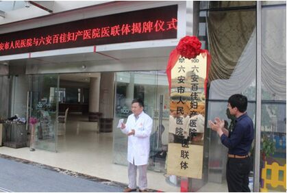 5月7日,六安市人民医院与六安百佳妇产医院的医疗联合体揭牌仪式在六安百佳妇产医院隆重举行。 六安市人民医院是三级甲等医院,是全市最大的综合性医院。此次六安市人民医院与六安百佳妇产医院结成医联体医院,不仅是响应国家十二五规划医疗卫生制度改革的号召,更是公立医院和民营医院之间互相合作、共同发展的积极尝试。 医联体医院的建立,旨在改善医疗体系、有效整合医疗资源、促进公立与民营医院的共同发展,前来就医的患者将成为医联体医院最直接的受益者。 六安市人民医院始建于1949年8月,六十六年来,现已发展成为专科齐全、设备先进、技术力量雄厚的三级甲等综合性医院,并成为皖西地区的医疗、教学、科研中心。 六安百佳妇产医院位于六安市裕安区磨子潭路1号,医院环境优雅、氛围温馨、交通便利。六安百佳妇产医院本着对世界前沿医疗品质传承与发展的原则,注重对孕妇进行孕前、孕中、待产、分娩、产后等全过程的医疗保健和健康管理,创建先进医疗兼容人性自然的妇婴医疗服务体系,致力成为具有酒店风格(Hotel-style)兼备家庭温馨(Home-warm)的医疗照(Holistic care)的3H医院。