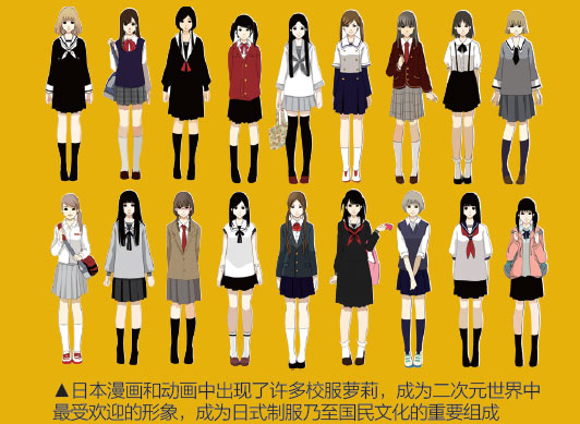 本文系人民网独家发布,任何媒体、网站或个人未经授权不得转载、链接、转贴或以其他方式复制发表。 16世纪中叶,葡萄牙、西班牙人最先通过航海来到了日本,许多海军家族成为日本新移民,西方文化开始渗入日本社会。直到19世纪,日本服装制造业通过简化了西方海军家庭儿童服饰,创造了日本校服的雏形——水手服。第二次世界大战后,男孩们的校服跟随日军的服装而定型,女孩的校服样式则随着海军的制服而定型。与传统的和服相比,日式校服更现代化也更利于行动,成为了日本传统服饰和西方服饰的结合。和平年代下,日本文化的沉淀,日式校服去除了军阀气息,反而更多地体现了青少年特有的纯洁,学生群体和社会人士划分开来。