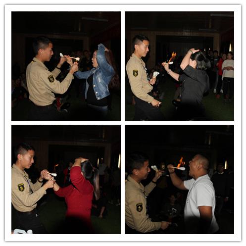 一根棉棒蘸上酒精,把火点燃,把几寸高的火焰往嘴里吞下!让洗乐美家人克服心理障碍,增强自信心,学会用平常心对待,迎接新的、严峻的挑战;培养自我突破的能力和积极的信念。洗乐美的家人们感言;“吞火都可以,那么还有什么不敢做!”