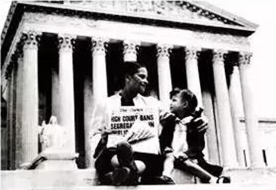 这张照片摄于1956年,一个美国的联邦大法院前边坐着两个人,一个是4岁的黑人小姑娘,一个是她的母亲。他们很高兴地举着这张报纸,上面写的字是:最高法院今天禁止了在中学里面发生的种族隔离制度。在那一年小姑娘想去自己社区里面的白人学校被拒,因为当时白人学校和黑人学校是不能混合的。 她的父亲是一名律师,愤而起诉。官司一直打到了美国的联邦大法院,六位大法官坐到一起来讨论,把黑人和白人隔离开来到底是否违背了美国的宪法。这也是心理学第一次作为测量学科被引证。通过实验看到,当把白人和黑人隔开来之后,虽然孩子只有四岁,依然可以清晰地认识到,白人比黑人好。于是这些大法官就做了一个定论,这也是美国著名的1956年教育法案。 这个法案的执笔人叫布朗,布朗法官第一次清楚地在法律文件中阐明了教育的观点: 教育是帮助一个孩子在未来的生活中更成功地寻求自己的幸福,而教育不是为社会机器塑造一个合适的螺丝钉。 教育应该是倾听孩子的声音,帮助他成为他自己,帮助他在未来生活中找到他要的幸福。