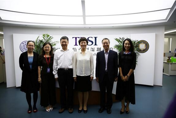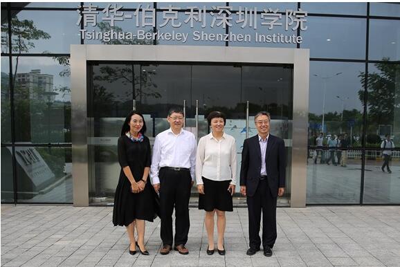 (左一:TBSI行政办主任宋岩左二:TBSI共同院长康飞宇 左三:清华大学党委书记陈旭 左四:清华大学深圳研究生院党委书记武晓峰)