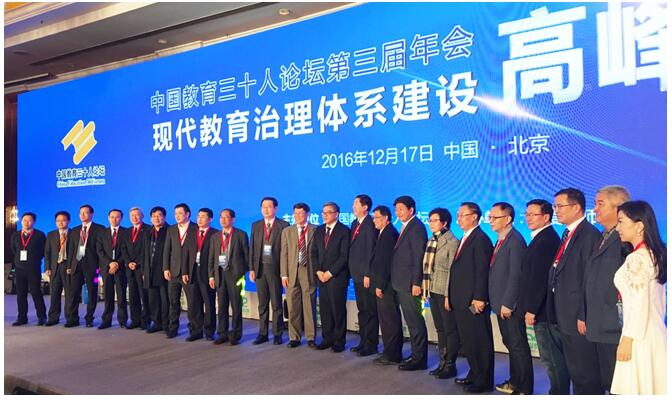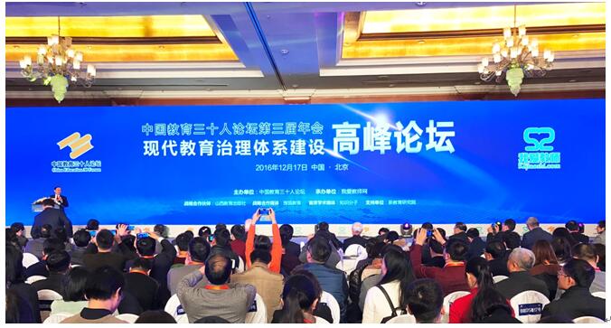 2016年12月17日,远播教育集团受邀参加在北京举办的中国教育三十人论坛第三届年会,远播教育研究院院长严文蕃教授、远播教育集团董事长李霞女士、翼生涯北京研究所副所长常雪亮女士、研究员王君旭女士、集团市场部北京分中心吕艺宝女士、陈伟先生出席了此次会议,与来自国内外的名家和著名教育专家共同探讨“现代教育治理体系建设”。