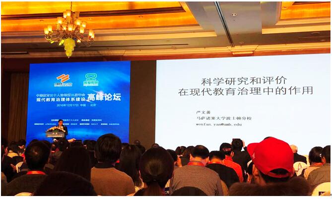 群贤毕至 大咖云集 远播教育研究院院长严文蕃教授,是中国教育三十人论坛成员、美国马萨诸塞大学波士顿分校终身教授、教育领导系主任。严教授作为此次论坛的演讲嘉宾,在论坛上进行了《科学研究和数据在现代教育治理中的作用》的演讲,与其他嘉宾共同探讨现代教育新思维。