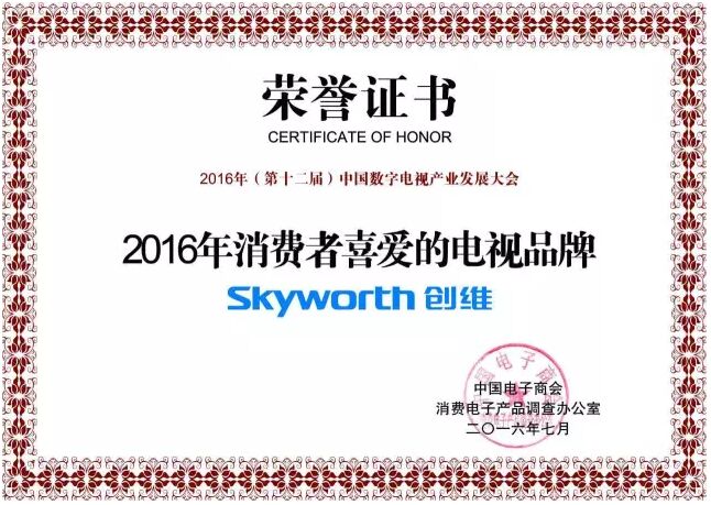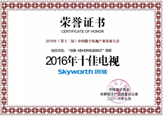 创维携新上市的G7·中国梦系列参会,荣获“2016年度十佳电视“和“2016年度消费者喜爱的电视品牌“两项大奖。
