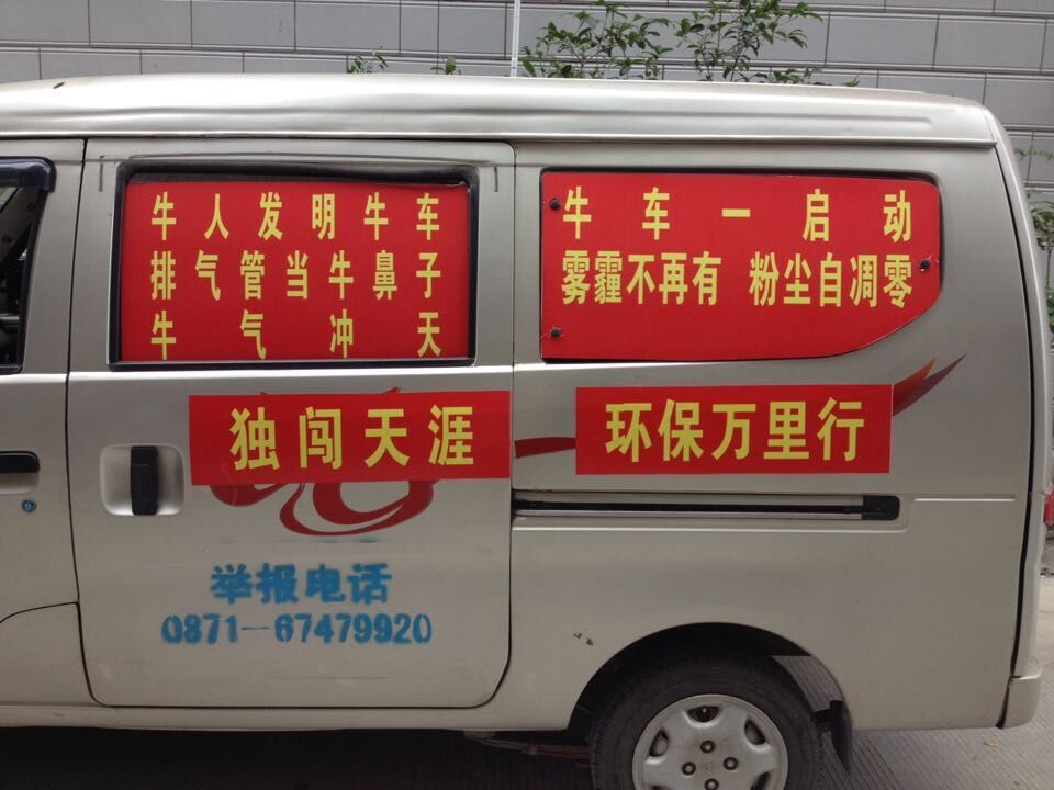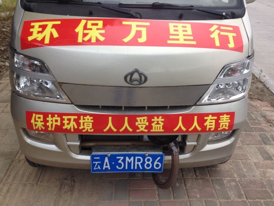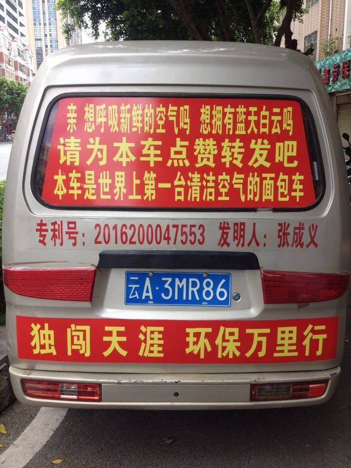 武汉的洪水还没有退去,太湖的水位又逼近历史高值,炎热的夏季人们痛心于湖面缩小、城市内涝,还有一个人却惦记着汽车尾气污染和冬天的烦恼——雾霾。 民间发明家、福建省闽侯县南通镇人张成义近日开着他自己改装的面包车,车头安装有一个水过滤空气净化器的面包车,开始了一段唐吉坷德式的环保万里行。
