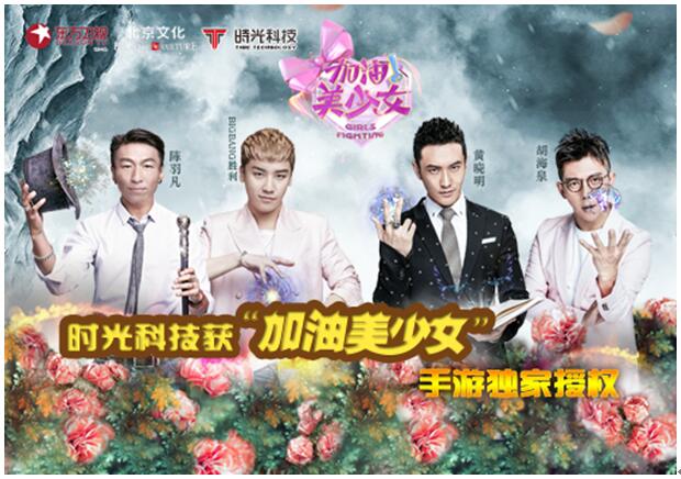 图1-【时光科技获“加油美少女”手游独家授权】 “加油美少女”是一档由东方卫视打造的少女组合励志成长综艺节目,节目为填补内地优质女团缺失而生,旨在让怀揣梦想的少女们少走弯路,通过自身努力和节目资源,更扎实地朝着梦想迈进。节目的四位重量级导师分别是黄晓明、胜利、陈羽凡、胡海泉,他们将与观众共同见证一支的国产顶级偶像少女天团的诞生。该节目自今年6月开播以来,以其崭新的综艺节目形式,获得中国观众的关注和喜爱,在视频收视率和话题关注度上屡屡创出新高。