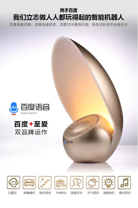 百度一直看重语音交互,不仅仅是因为语音交互是未来流量最重要的入口,还为了实现百度连接“人与服务”的理念。Deep Speech 2、度秘等百度智能产品,以百度大脑为核心,正在下着人工智能的旗子。而且为了整合智能硬件生态,百度在智能硬件上沿袭它的平台化战略——百度Inside。虽然落地的硬件屈指可数(除了小度机器人和至爱小播机器人)还没有见到其他的语音识别类硬件。小度机器人以优秀的识别和对话能力震惊国内,至爱小播则从良好的人机语音交互体验、丰富的语音搜索内容资源,以及低于其他同类产品一半以上的极具诱惑力的亲民价位,吸引了来自全国的众多客户。对于人工智能来说,机器的深度学习需要建立在庞大的有效数据训练上。百度语音技术需要得到比现有以智能手机为代表的移动终端更丰富的入口,以采集到更多的数据样本。并落地产品化以检验其算法和资源的有效性,可以明白百度语音技术基础服务必定持续免费、接入流程更简单、语音技术的投入也更大。而百度通过硬件获取大数据反过来又可以优化互联网服务,为每个用户提供更加个性化的智能服务,形成良性循环。