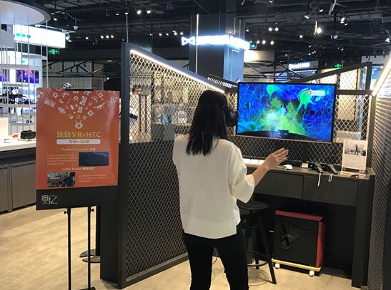 图为顾客在乐之VR体验区试戴体验VR游戏 VR专区位于乐之馆内一层,HTC Vive、小宅、暴风魔镜、大朋、蚁视、小鸟看看、富士通等各大主流品牌纷纷入驻其中,顾客可以在这里根据自己的需要体验和选购不同规格的VR眼镜、VR头盔、全沉浸式的一体机等,从入门级到专业级应有尽有。作为一个为人们提供情境场所的全方位智能科技生活体验空间,乐之上海旗舰店通过举办“玩转VR”等活动,将贯穿整个品牌的“科技智能”这一概念,更具体的展现于顾客眼前。