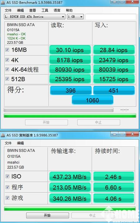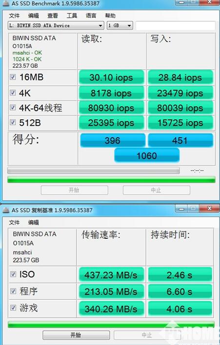 再来看看IOPS和模拟程序读写性能,可以看到起表现达到主流性能,足以应对游戏和大型程序的快速读取需要。