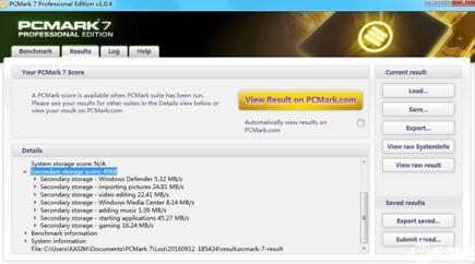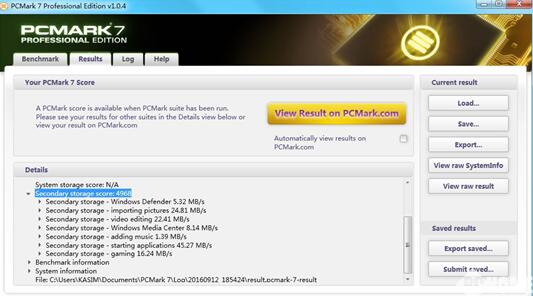 使用PCmark7对单硬盘测试,实测各种模拟测试的读写性能优秀。无论是杀毒软件操作、图片读写、视频编辑、音乐播放还是启动应用程序、游戏的性能都够强大。