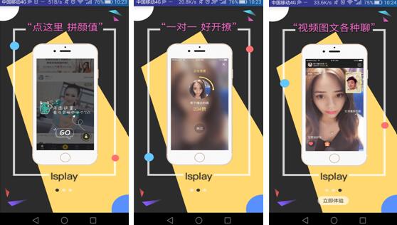 用集合的概念,我们知道既有即时通信需求和网络视频需求的网络用户量至少达到4.46亿。这个数字给人带来的设想是,当这些网络用户的网络视频使用习惯转嫁到即时通讯时——视频即时通讯的用户保守估计就有4.46亿。 随机视频社交 Isplay玩潮就是看到这个市场,他们打造了一个可以让人们进行一对一随机即时视频聊天的软件,在这里用户可以在线进行随机即时视频社交。 上到Isplay玩潮,用户可以搜索到来自世界各地的其他用户,系统自动根据限定条件匹配,如果用户不满意可以左划进行下一个的匹配。 用户有60秒的时间进行初步的认识交流,若觉得彼此投机,互相点赞即可关注,进行无限制的视频聊天。与直播一样,一对一聊天室也可以互赠礼物来表达心意。互相匹配上后,还可以在平时进行单独的图文留言交流。