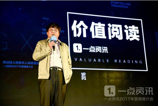 一点资讯2017推介会广州场 被誉为“互联网新闻老兵”的陈彤在开场致辞中提到:“一点资讯的优势在于我们是大胆提出人工干预算法技术的第一个信息流产品,并拥有一只可能是中国最优秀的技术与编辑团队,我们坚信人+机器一定能战胜机器!预测未来的最佳方式是亲手创造未来,我们相信一点资讯提倡的价值阅读,必将带来移动资讯的革命。”