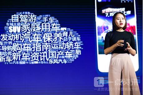一点资讯营销策略顾问王梦 随后,王梦介绍了一点资讯基于Smart feeds之上开发的五大广告产品: l “一步到位”,在信息流中可直接完成试驾信息的填写等相关服务,且一次填写之后,后续无需二次填写。同时,基于试驾信息,将相关内容定向推送给用户。 l “场景融合”,通过机器算法,智能抓取与某一品牌关键词相关联的文章,将品牌信息规模化植入到文章中,使品牌信息原生融入用户的阅读场景。 l “如影随形”,将品牌与明星等超级IP绑定,借助结合目标人群兴趣偏好自动匹配创意素材,智能传达品牌信息,并根据不同用户消费形式的偏好标签,来智能匹配图片、视频等不同形式的品牌信息。 l “一搜即达”,基于算法语义分析拓展用户的搜索结果,根据用户搜索和浏览的双重标签,在用户的搜索结果页原生植入品牌信息。 l “一触即发”,融合内容与广告信息,在用户点击消费广告时,基于算法全面激活品牌关联内容,实现用户兴趣二次校准,优化品牌目标人群定位。 此外,王梦还介绍了一点资讯双重精准投放、自动化创意以及构建跨设备场景三大领域进行探索。谈到跨设备场景的构建,OPPO移动互联网商业中心商务总监易强也受邀出席活动,在现场介绍了OPPO与一点资讯的合作:“OPPO选择与一点资讯进行战略合作,不仅为OPPO用户提供了更有价值的新闻资讯。同时,双方强强联合的金牌营销服务团队,也为广告主提供了精准的一站式兴趣营销服务。”