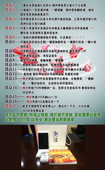 在这里恭喜这位朋友,前些天5-10万之间的中行的白金下了不少,13万的还头一次遇到。有机会我会让这位会员分享一些经验和总结。 今天和大家分享的是拉卡拉特约第二部!经典,给力! 收款宝分为个人版与商户版 商户T+1版:需要真实营业执照以及相关手续,无实时D+0到账功能。 商户D+0版:原则上也是需要提供真实营业执照以及相关材料等,商户D+0版可做法人结算,法人结算在拉卡拉系统默认为真实商户,提高下款率。 收款宝个人版:提供资料简单,属于个人收款终端,费率0.5+0.2,单笔5000日20000月100000,无任何认证。 拉卡拉90%下款1 10万易分期强开方法 按照技术操作人行征信好,负债20万以内90%成功率,黑户征信不良,负债高50~60%成功率!前提是定要有拉卡拉收款宝商户D+O版(最好绑定工行借记卡!)下面说步骤流程: 1、手机号码,最好实名制,用一段时间 2、办理商户版机票实时到帐,因为是法人结算,刷卡提现累计60万以上(人行征信没问题的可以少刷,负债高,征信不好的要多刷) 3便民还款多次,便民缴费多用。 4考拉征信分600以上 5首页点击赚点钱,然后购买考拉理财2号稳健型,(最好用工行借记卡买,支持刷星),多买多卖,次数取胜7买完就卖,钱多就多买,每天最少留100以上理财余额,替你还额度和购买理财金额相同!(黑户严禁申请替你还,黑户要等出额度的横幅后申请) 6有了替你还,替你还及时换上之后,易分期100%成功,额度是1万到10万(也可等额度横幅出现后直接申请) 拉卡拉易分期共有2个申请通道,一个看征信(拉卡拉钱包App1—10万)一个不看征信(考拉征信App1-5万) 外面中介的操作步骤就是这样,最经典实战的方法,不要相信外面天花乱坠的广告,自己去总结实战才是硬道理。卡创金融一体机拥有强大功能。请看下图