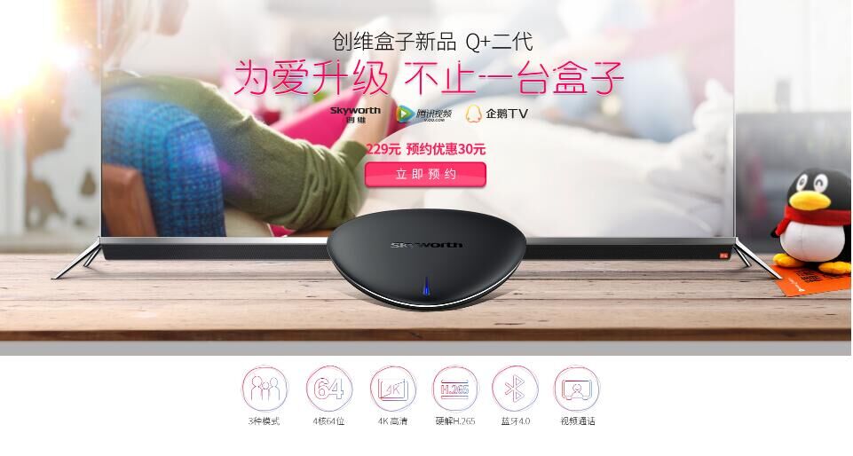 5月11日,创维数字联合腾讯企鹅TV、南方传媒互联八方,发布了Q+二代盒子并启动京东预售。相比较京东曝款Q+而言,Q+二代除了199元的定价策略不变,在外观、配置、功能、内容、体验上全面升级,所搭载的全新操作系统SKY-UI3.0,更是实现了一键切换3种家庭模式的定制体验。