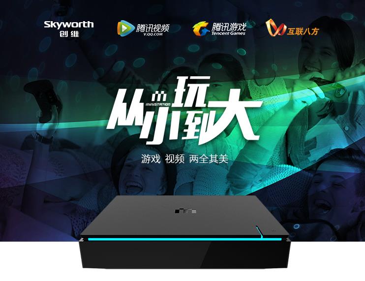 从电视大屏切入家庭游戏机市场,两大巨头一拍即合 创维数字与腾讯就微游戏机的合作,绝非偶然。 腾讯一直都在加大游戏方面的投入自不必说,近两年,通过《全民超神》《全民突击》积累了初期移动电竞用户,又在《王者荣耀》和《穿越火线枪战王者》等后续产品的帮助下,腾讯已经将用户规模扩大到1.7亿。 创维数字近两年也在持续加码创维盒子,不管是运营商市场还是互联网市场,创维盒子都不仅仅是一台电视盒子那么简单,更多的是公司对于家庭互联网娱乐中心的全面布局。通过创维盒子强大的游戏功能,不难看出创维数字在游戏细分领域上从硬件研发到内容合作的努力。 巨大的人口红利背后,中国游戏市场一直处在高速增长期。2015年全球游戏市场规模达915亿美金,中国超越美国以约1400亿人民币的市场规模,站上世界第一游戏大国的位置,年增长率23%,远超美国3%,市场潜力巨大,其中以电竞市场的发展速度最为飞快。 大部分国人并没有电视游戏主机概念,相比于端游、页游增长的停滞不前,移动电竞游戏的快速增长,中国的游戏机市场可以说还是一片空白。 创维数字与腾讯合作微游戏机,从电视大屏切入到家庭游戏机市场,可以说是一拍即合。要知道无论是PC互联网最成熟的时期,还是移动设备成为个人器官的今天,电视都一直是重要的应用场景,以电视节目和活动游戏为主导的家庭娱乐,始终是娱乐业发展的的重要组成部分。此次创维数字牵手腾讯,共同发力家庭娱乐市场,在游戏内容的支持下,依托腾讯庞大的手游用户群体及创维的家庭娱乐受众人群,同时也将吸引更多游戏内容商的加入,形成一个渠道、平台、终端、内容、服务互利互补的游戏生态社区。 创维微游戏机 游戏、视频两全其美 创维miniStation微游戏机是继主机、微主机之后,由创维数字联合腾讯发布的跨屏全体验智能游戏机,是基于电视的全新游戏硬件品类,基于Android开放平台,在内容更新上与传统游戏主机相比更有优势。同时,创维微游戏机具有PC级硬件配置,性能强劲,也为电视大屏的游戏试听感受与多人同屏互动的实现提供了保障。