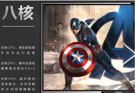对于这个价位的平板电视而言,能做到55寸全高清大屏已实见诚意,但飞利浦55PFF5055电视还硬是做到了“内外兼修”——搭载了4核CPU+2核GPU+2核VPU的8核心高端配置,后台运行、像素填充、图形渲染均有优异表现,而且还支持多种视频格式的硬解码!