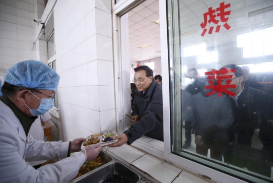 人民网宁夏2月1日电 (记者 杨芳)国务院总理李克强1日来到宁夏固原市原州区中心敬老院,与老人们在一起过小年。总理与坐在身旁的回族老人马安仓边吃边拉家常,称赞老人“红光满面”,还给他盛了一碗热气腾腾的饺子。随后,李克强起身举起手中的热饮,祝愿各位老人身体健康,幸福长寿。
