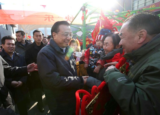 在银川纳家户清真大寺,李克强与宁夏民族宗教界上层人士围坐恳谈。他说,这座清真寺建筑体现了中华民族、中华文化多元一体特征。家和万事兴,希望继续发扬爱国爱教传统,促进民族团结、宗教和顺,实现各民族群众和谐相处、共同发展。随后,李克强来到当地集贸市场,与购买年货的群众交谈,并走到一个个摊位和街边小店,了解节日市场行情等情况,祝他们生意更加红火。