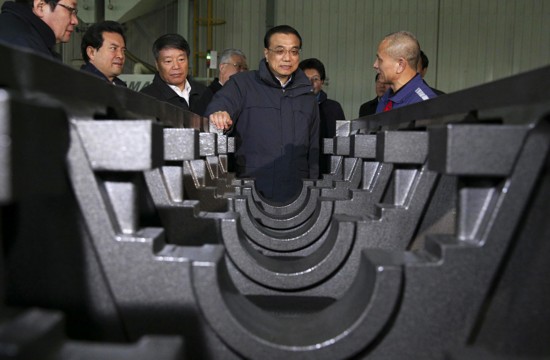 在共享装备公司,李克强先后走进传统铸造车间和3D打印车间,看到企业通过创新,将过去傻大黑粗的铸件产品逐步变成更加适应市场的精细灵巧新产品,今年利润将实现翻番,李克强赞许地说,用颠覆性新技术改造传统产业大有空间。“中国制造2025”的前途就在于“+互联网”,广泛集众智、借外脑,不仅可以在全球找到传统产业升级的最好技术方案,实现材料、工艺、模式、人才最佳组合,而且会大大提升效率和效益。要进一步打造更开放的平台,让大中小企业、科研院所都进来,形成聚集效应和创新工场,推动传统制造浴火重生。