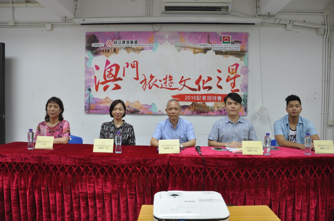 为推广澳门「论区行赏」步行路线,打造一小时慢游澳门,挖掘社区旅游资源,由澳门特区政府旅游局支持、澳门民众建澳联盟主办的2016「澳门旅游文化之星“漫慢”游澳八环情」6月6日下午举行新闻发布会。