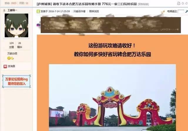 自从7月11日合肥万达城票价公布后 小伙伴们的心都在蠢蠢欲动 期待着7月23日开售门票 更是期待着9月24日正式开业 小编在逛论坛时还惊喜的发现 有心的粉丝整理了一整套【合肥万达城游玩攻略】