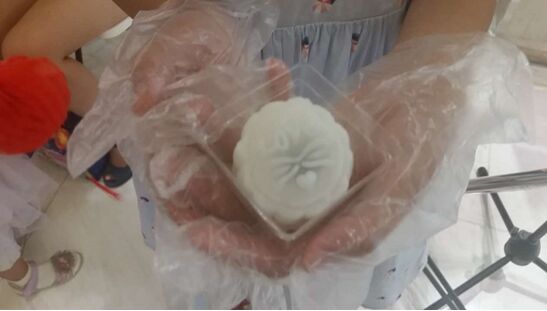 刚拿出模具、馅和皮,小朋友们就被深深地吸引住了,纷纷向老师请教如何制作月饼。在老师进行了一番讲解后,大家开始动手,一时间好不热闹,说着关于中秋和月饼的故事,一边专心的揉面团、包馅,不一会,一款款独特又充满浓浓爱意的月饼制作完成。